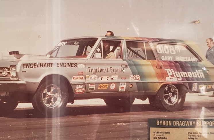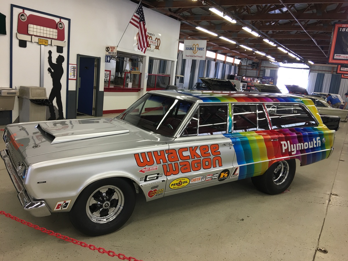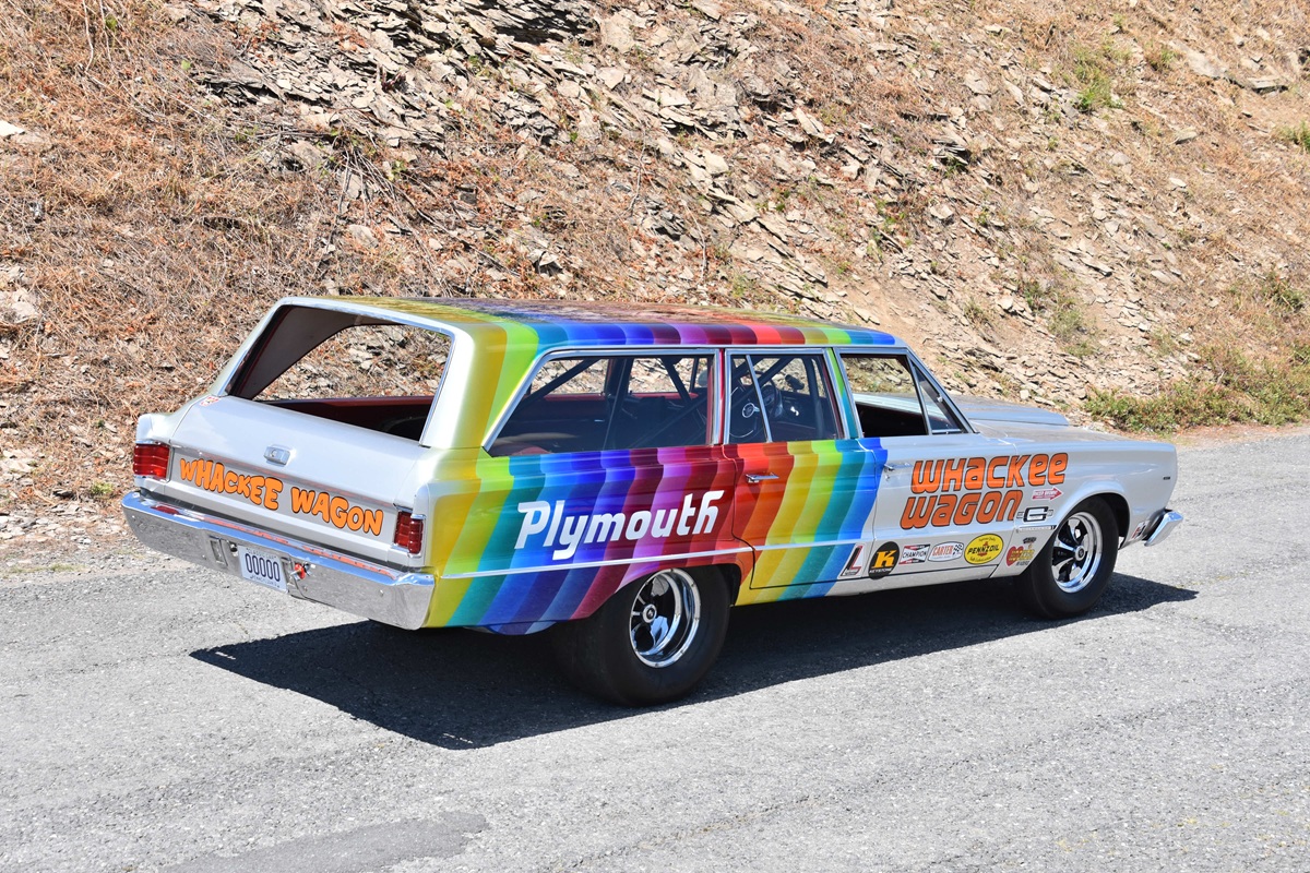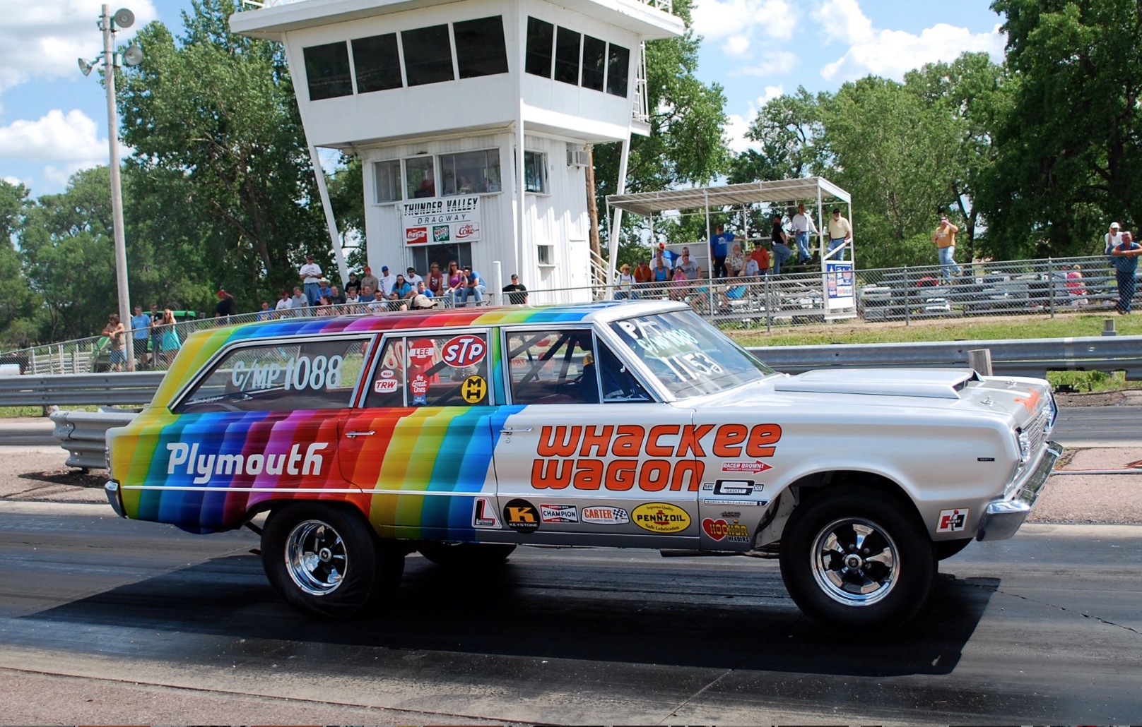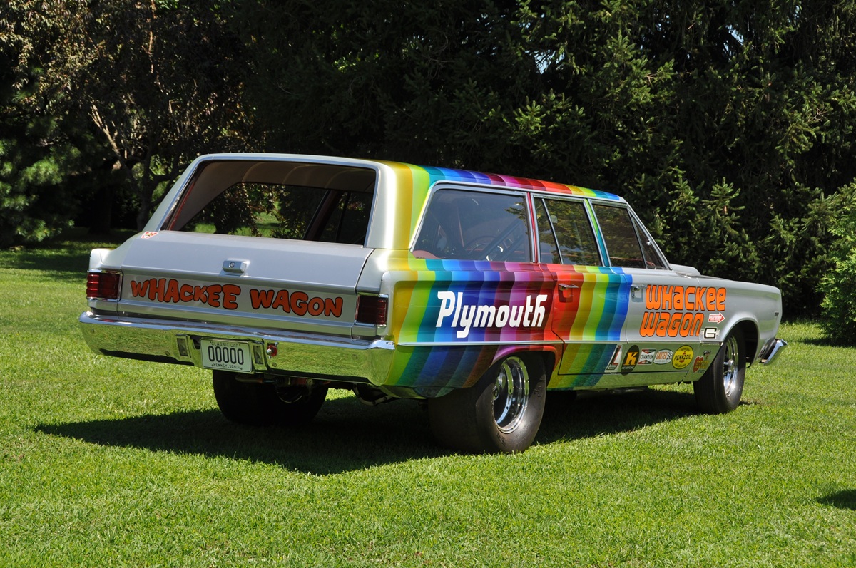 After the 1971 race season, Lee sold the wagon and slowly began his exit strategy from drag racing. The wagon exchanged hands but still maintained its wild paint scheme from when Lee Smith raced it. In 1974, Gary Engelhart bought the wagon and removed the worn-out HEMI engine and installed a 440. The car still looked good, and even the power tailgate window still worked. Gary Engelhart bracket raced the HEMI engine-powered wagon at Illinois’ Rockford Dragway and at Union Grove Dragway in Wisconsin. Gary eventually sold the wagon to a racer in the Midwest who painted the car white and made other minor changes. It was not until 2000 that Gary’s brother, Fred Engelhart, found the car and brought it back to his shop in Minnesota. A collector of rare Mopar Super Stockers and Pro Stockers, Fred restored the wagon to its ‘as raced condition’ in 2006. This included putting a stout 426 HEMI engine back in it and having the wild ‘Whackee Wagon’ multicolored striped paint job replicated and applied.