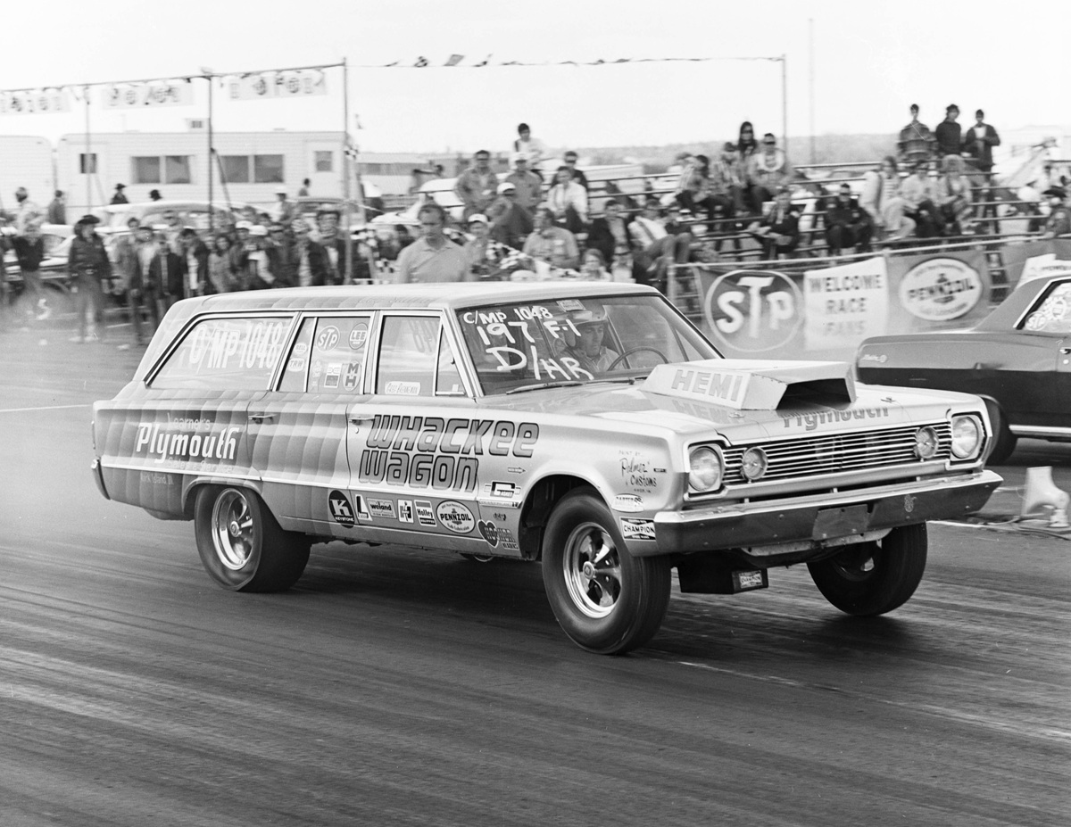One of the coolest things about drag racing is that there’s virtually a class for any kind of vehicle. From Dragsters, Funny Cars, Fuel Altereds to even production-based passenger cars, you can basically take them to a drag strip and make some runs. Among those streetcars, there are hundreds of various combinations based on engine and body configurations. If we look back to drag racing’s ‘Golden Era’ of the 1960s and early 1970s, there were racers who really stretched the rules, looking for any advantage with assistance from the corporation they ran under. The factories were so in tune with what was happening, they’d also create fictitious engine options and package them, then submit the paperwork to NHRA. Lo and behold, the car was deemed legal to run. Here’s a story on just one of those cars, a 1966 Belvedere Station Wagon powered by a 426 HEMI® engine. It was successfully campaigned by A/FX Mopar® racer Lee Smith, and despite Lee Smith’s passing back in 2020, his HEMI engine-powered wagon is still with us. Today, the ‘Whackee Wagon’ is a relic of a bygone era of crazy names with a rainbow of colors-adorned racecars. It’s also a perfect example of the period when the factories ‘played the game’ and created fake combinations for drag strip dominance.