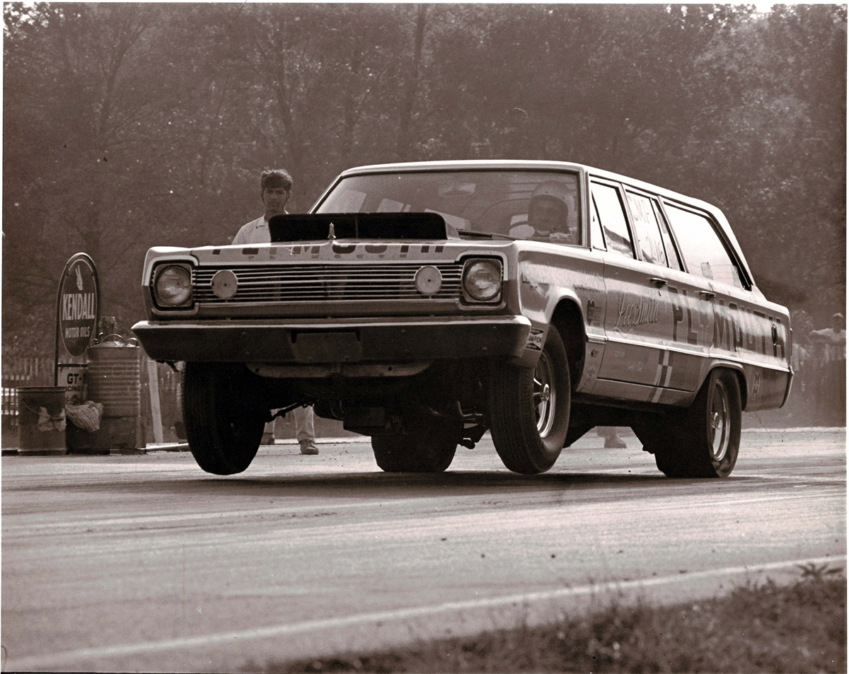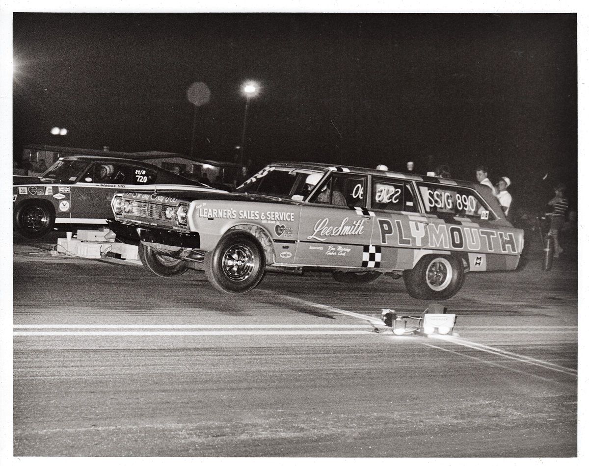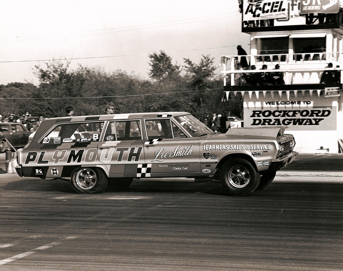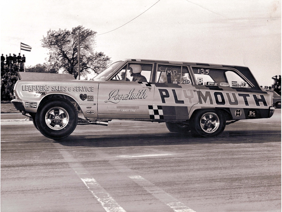With his assignment from the factory, Lee Smith looked no further than the sponsor on his 1965 A/FX HEMI Belvedere, Learner’s Chrysler-Plymouth in Rock Island, Illinois. Lee found the plain, white and ordinary-looking 1966 Plymouth Belvedere wagon on Leaner’s used car lot. He went to work transforming the sedate grocery getter into a mean machine. Lee quicky yanked out the placid small block and installed a mighty 426 HEMI engine. With parts support from Chrysler, Lee set out to compete in NHRA’s Super Stock class. A machinist by trade, Lee paid attention to all the details of modifying the hefty family hauler to include shifting even more weight to the rear. When dropping the hammer at 7,000 RPM, you need to give the slicks a fighting chance to plant some rubber on the starting line. Lee also blueprinted the 426 HEMI engine per the recommendations of Chrysler’s Race Group Engineers. He also made sure the four-speed transmission and clutch could take the abuse of relentless pounding. Lee wanted everything perfect, but sometimes the laws of physics cannot be overcome, and things just break. Especially when trying to launch a 3,800-pound station wagon off the line, run-after-run with the punishing brute force of a HEMI engine.