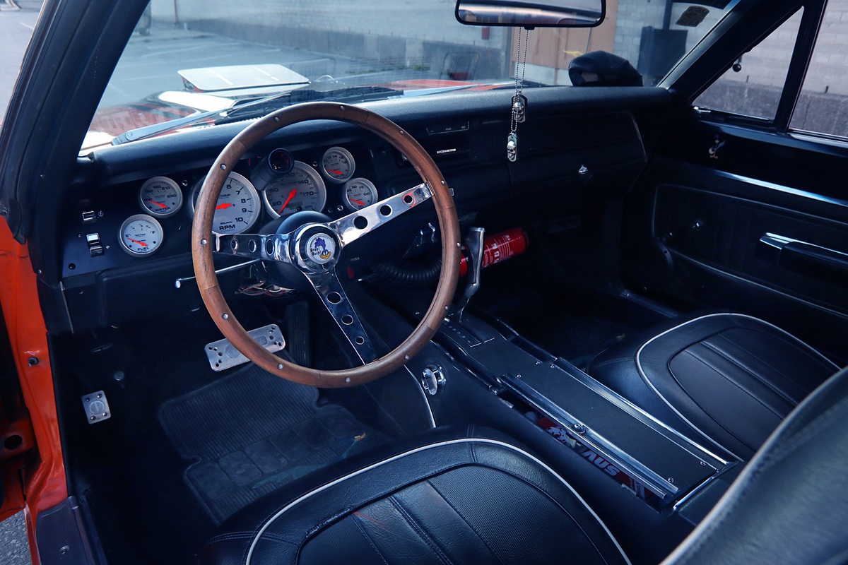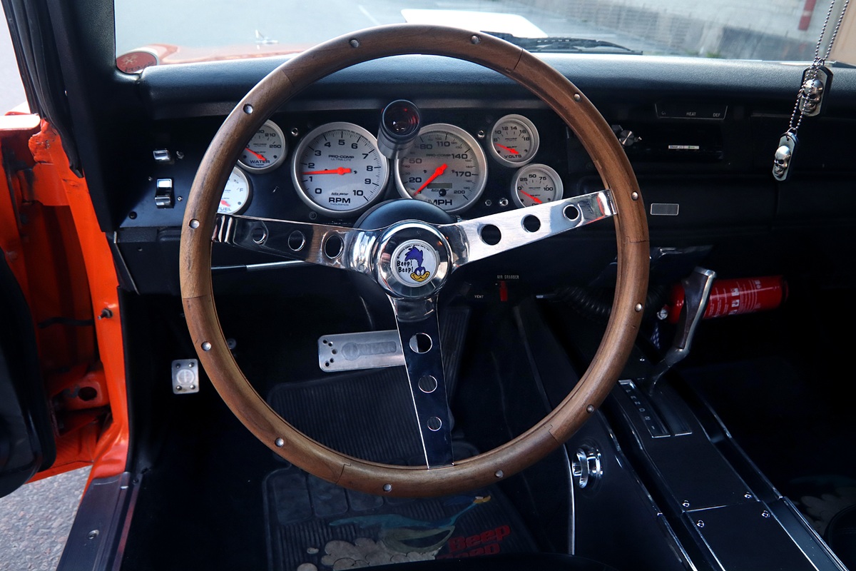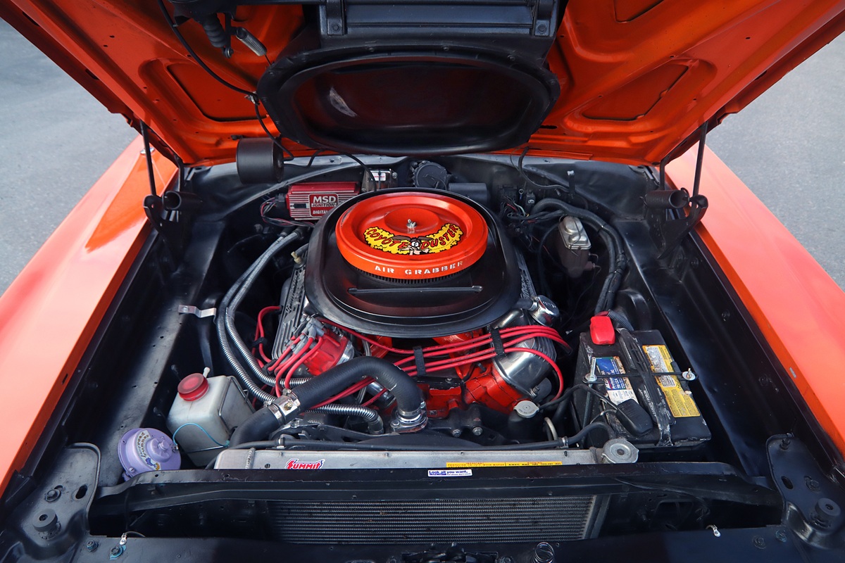 Aside from what’s already been mentioned – that the 440 is relatively stock – the V8 is equipped with Hooker Competition headers and a Holley Street Avenger carburetor rated at 750 cfm. The 727 transmission is from TCI – their Street Fighter model, rated to handle up to about 650 horsepower. Out back is the classic 8¾ rear axle with 3.55:1 gearing and an Eaton Detroit Truetrac torsen-style differential.