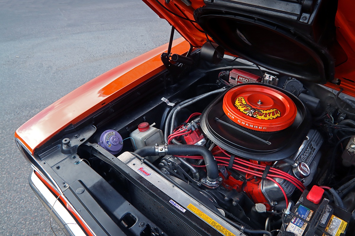 “I swapped the shifter for a Pistol Grip, a Hurst copy. Then I hunted down a set of nice center caps on eBay for a while until I finally found the ones I wanted. I also built a new exhaust system with an H-pipe and replaced the radiator with a new aluminum unit,” Bergwall says.