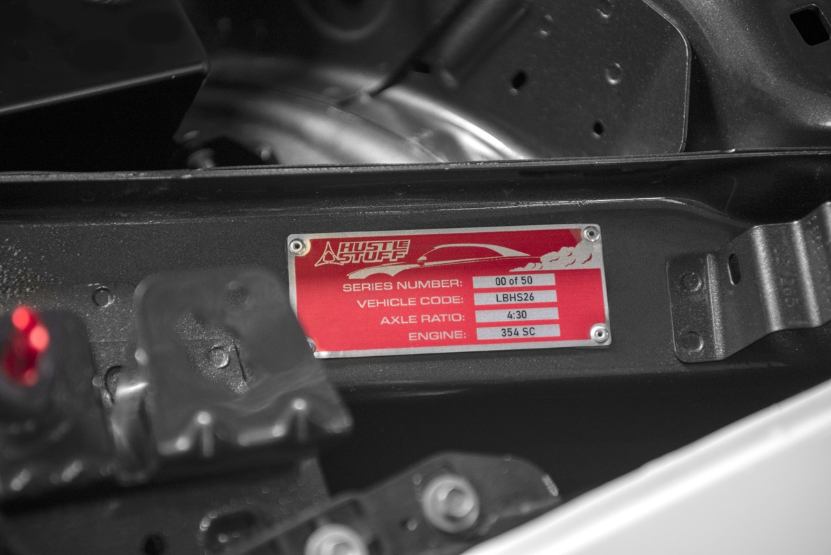 - Special plaque on billet cover of the 3.0L Whipple supercharger indicates production number on each of the limited-edition, turnkey drag cars