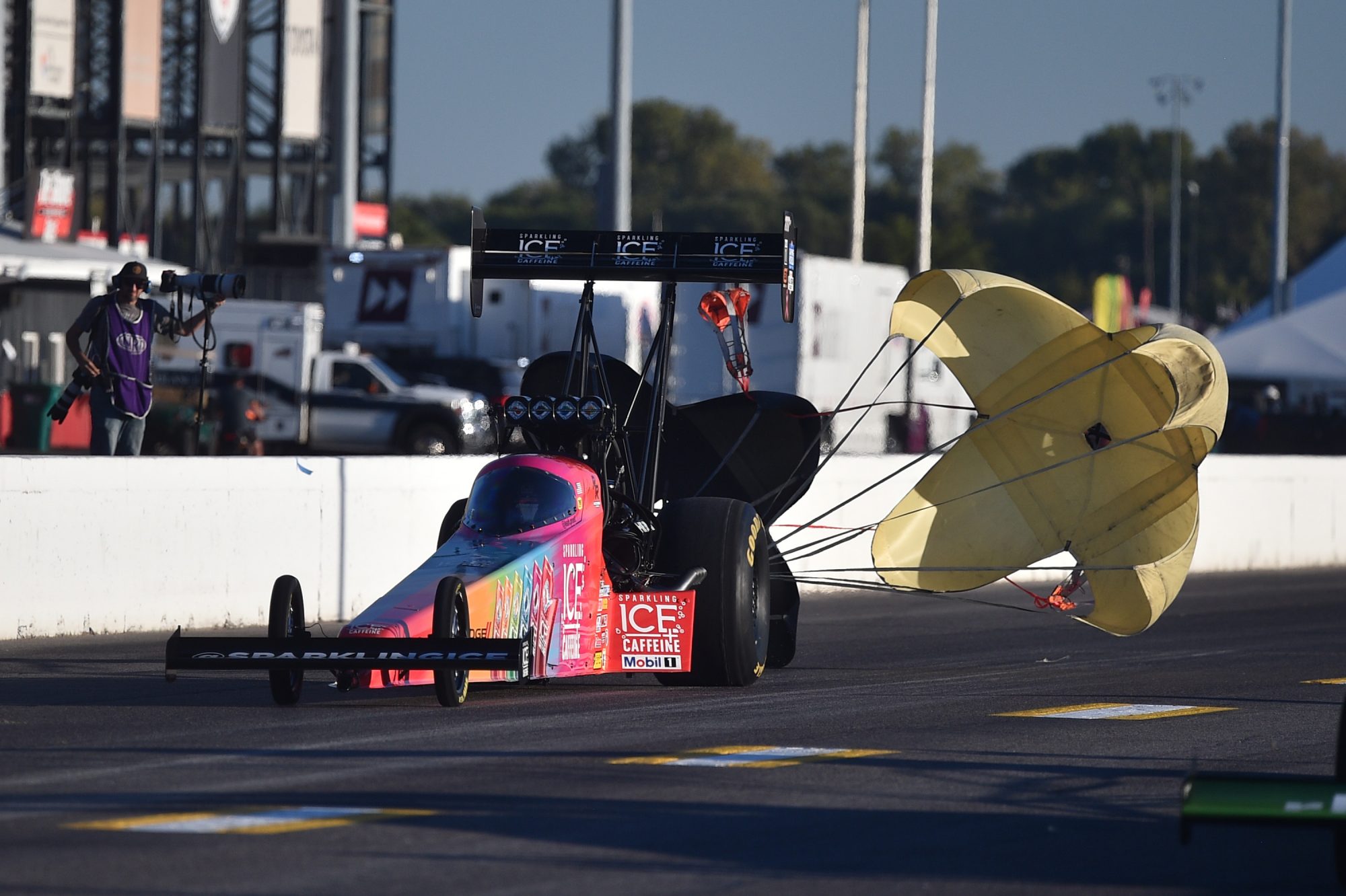 TSR driver Leah Pruett came into the race weekend sporting the Sparkling Ice +Caffeine livery on the Dodge//SRT dragster for her 190th career Top Fuel start and with a good track record at the Midwest Nationals event after having advanced to the semifinals in three of her last four appearances (2018, 2019 and 2021) at the St. Louis area dragstrip. A best qualifying lap of 3.729 seconds at 329.18 mph put her 11th on the eliminations ladder and paired her with No. 6 seed Tony Schumacher for the opening round.