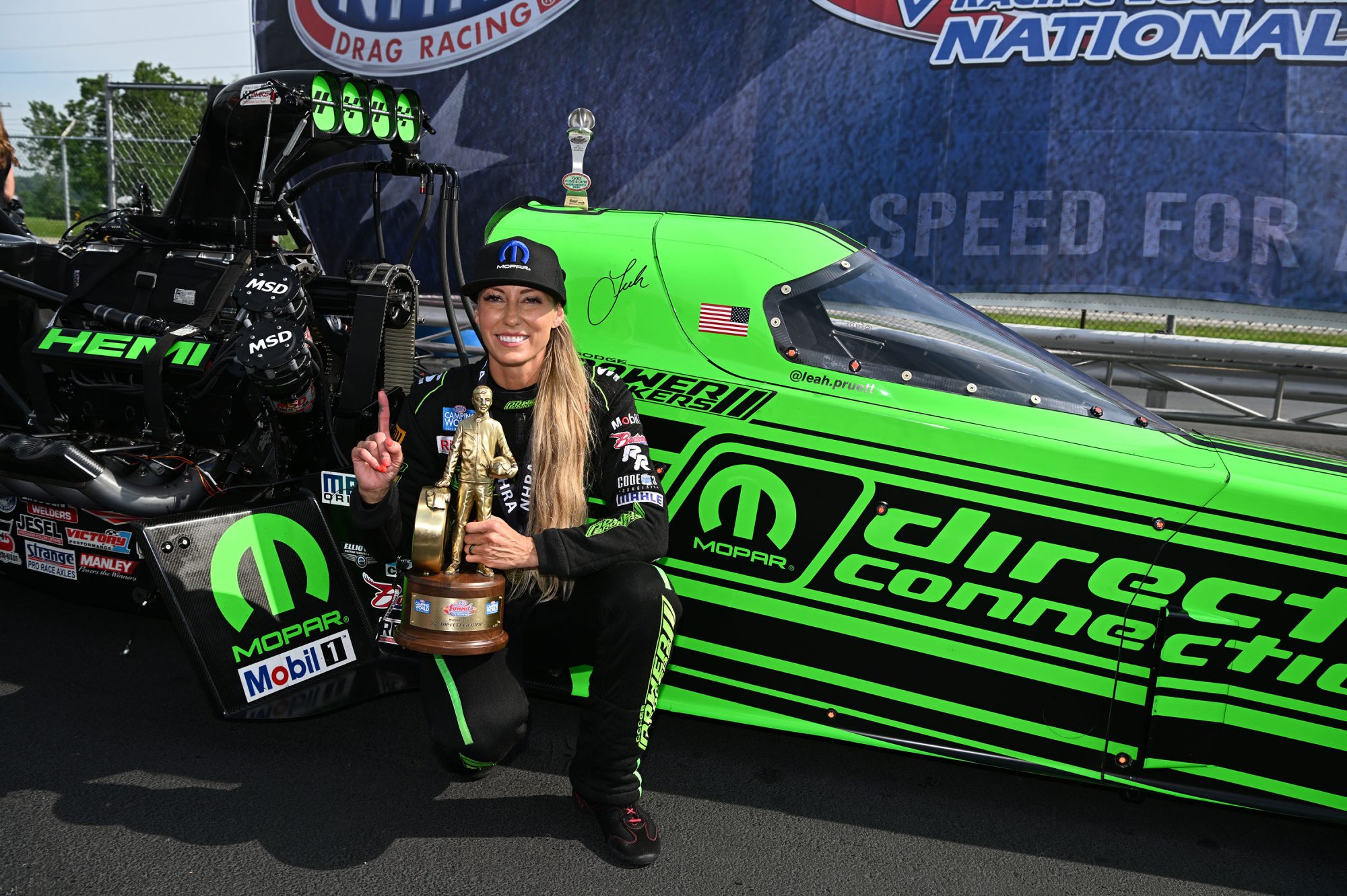 Hagan’s teammate is also getting ready for NHRA’s “Big Go”. Leah Pruett, who currently is sitting fifth in the NHRA Camping World Top Fuel points standings, is looking to step up her game and bag her first U.S. Nationals Top Fuel title. Her TSR Dodge//SRT Direct Connection Top Fuel Dragster will blast into Indy ready to rock after a strong runner-up finish during the NHRA performance at the Lucas Oil NHRA Nationals in Brainerd, Minnesota, two weeks ago and winning early this summer at the Summit Racing Equipment NHRA Nationals at Norwalk, Ohio. “I feel very confident coming into the Dodge Power Brokers NHRA U.S. Nationals with our TSR Dodge//SRT Direct Connection team,” said Pruett. “We showed that the Direct Connection dragster can run with the best after our winning hits (runs) at Brainerd. We had a tough road to get to the final round against three former World Champions and the current points leader. We knew our work was cut out for us. Our focus is on propelling this momentum built from being extremely thorough and diligent, from the parts to the tune-up, and digging even deeper into where we can improve. Indy is the biggest race of the year for a driver and team. And you need everything working well to get that Dodge Power Brokers U.S. Nationals Wally. I know that is our goal.”