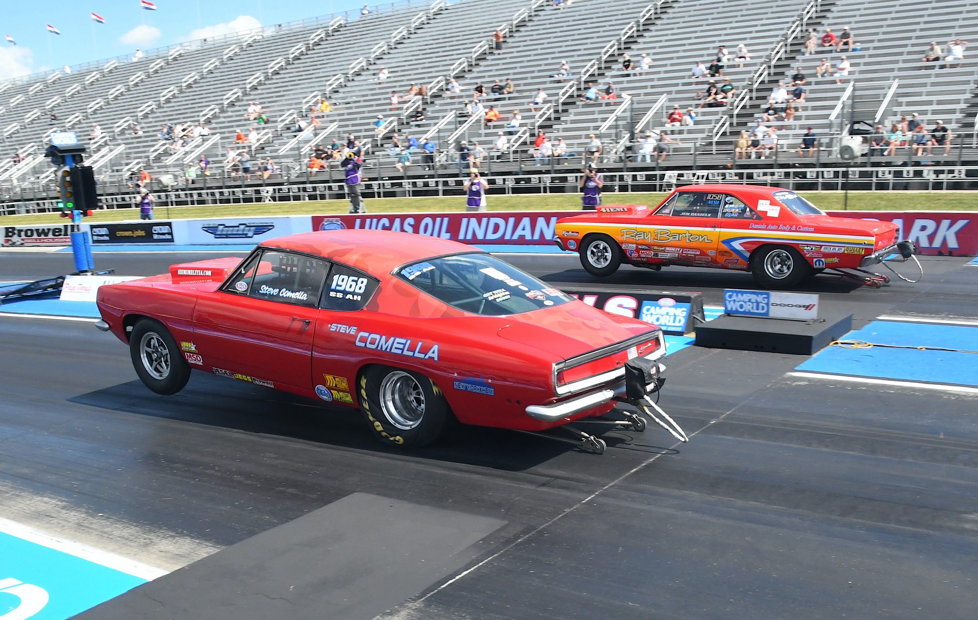 In the Sportsman Classes that include the Dodge HEMI® Challenge, Mopar® competitors will be going all out to capture this highly sought-after eliminator. Steve Comella, who’s won the last two Dodge HEMI Challenge events, is looking for a threepeat this year and his 1968 Super Stock HEMI Barracuda is ready to take on the rest of the field. “We’ve done nothing different to the car this year. We’re running the same engine and trans and have finetuned our combination,” said second-generation HEMI racer Steve Comella. Since there’ll be 15 or so other competitors trying to knock him off his perch and preventing him from winning another Dodge HEMI Shootout, you’d think there’d be more pressure on Comella. But he’s a seasoned racer and doesn’t get rattled by all the gossip in the SS/AH call. “I’m totally unplugged from the other competitors in this class and don’t worry about the drama. I’m not on social media and just stay focused on my race program.”