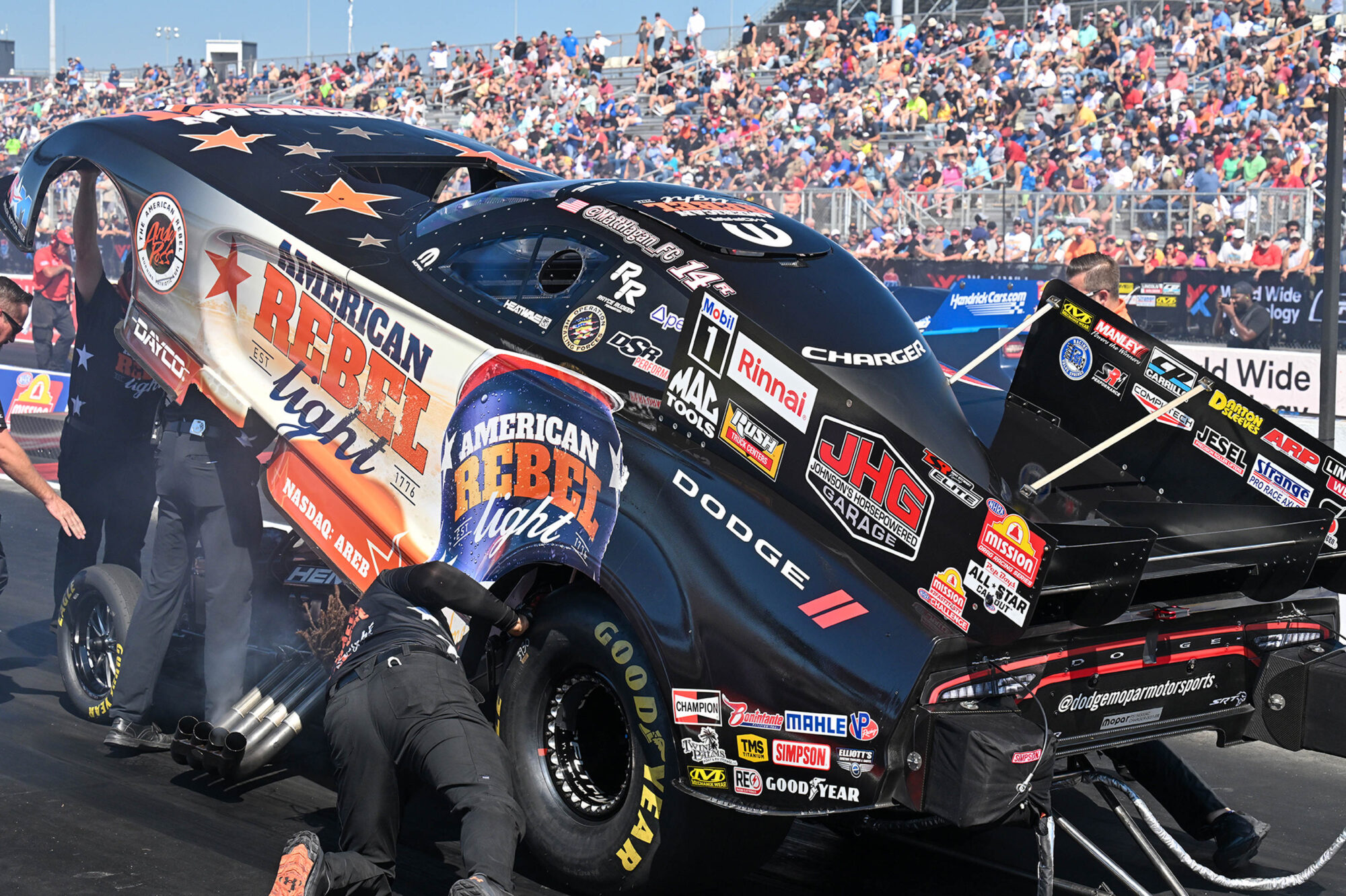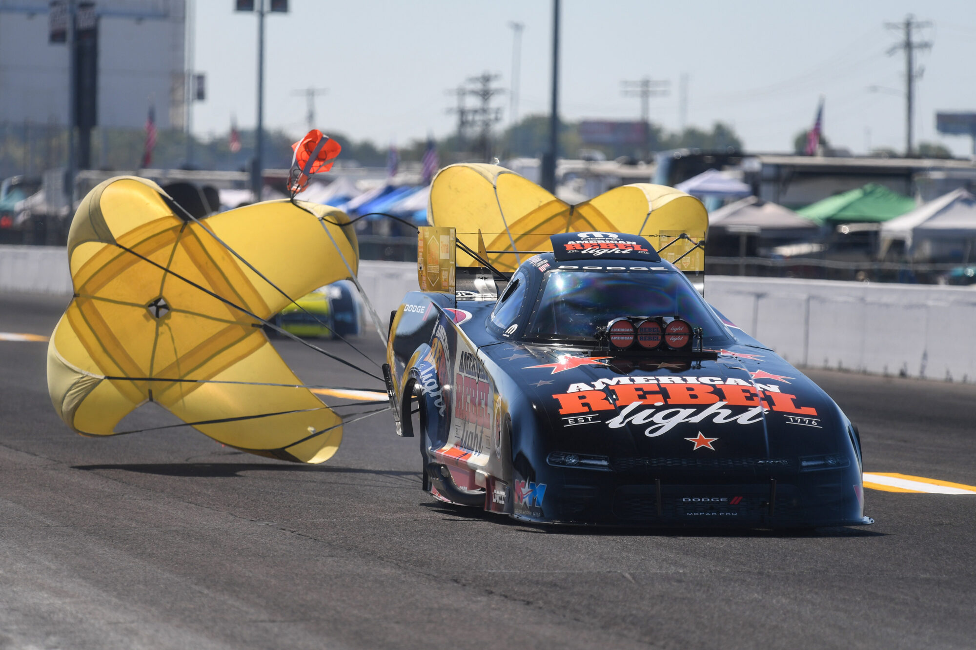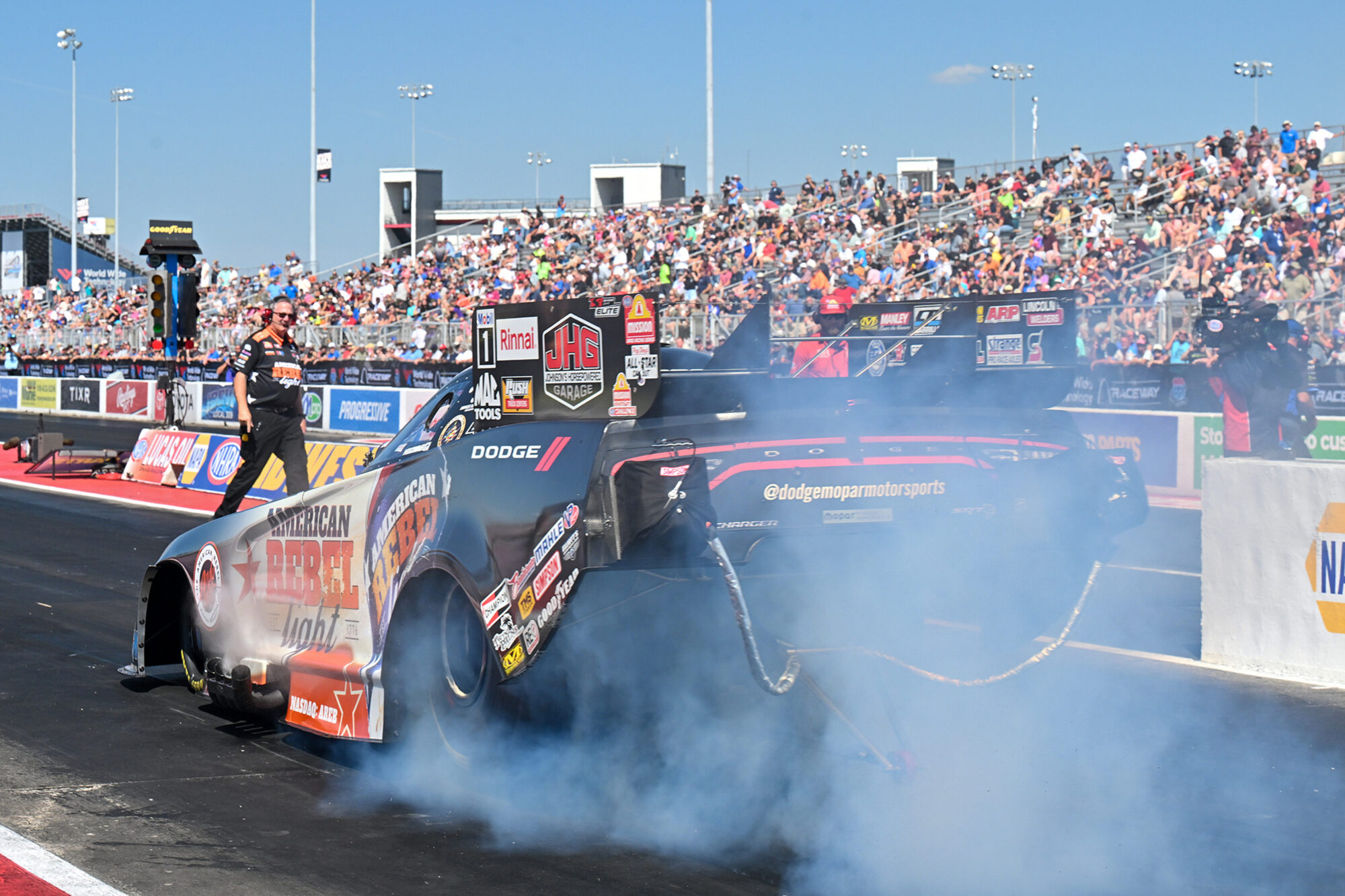 Matt Hagan and the Funny Car Team delivered a qualifying performance befitting a four-time champion, earning a strong 2nd place starting position for Sunday’s elimination rounds. Hagan and his Dodge//SRT® Hellcat laid down a solid 3.868 at 329.91 mph, positioning himself directly behind points leader Austin Prock for Sunday’s eliminations. Coming off a final-round appearance at Charlotte, Hagan expressed confidence ahead of the weekend: “We are now second in points and within striking distance. We need to keep doing what we do and not worry about anyone else.”