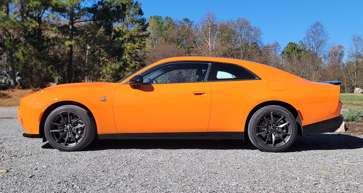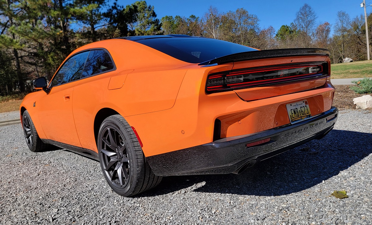 The day began with a deep dive into the SIXPACK Scat Pack at the Quarry Venue in Knoxville. Dodge Brand Chief Matt McAlear led the presentation, followed by design and engineering teams walking us through the car’s key elements – from the bold exterior styling to the advanced mechanical setup. Afterward, we headed to the parking lot to choose from a vibrant lineup of Chargers. My test car for the day? A striking two-door Scat Pack Plus in Peel Out, featuring the Blackout Package and 20×11-inch wheels wrapped in 305/35ZR20 all-season rubber.