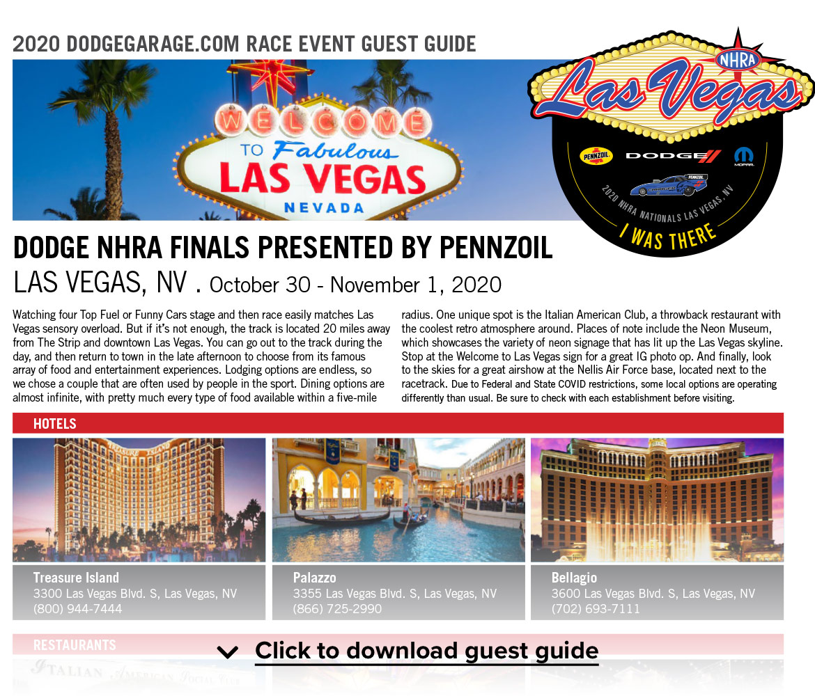 If you are heading out to the Dodge NHRA Finals this weekend, check out our guest guide below!