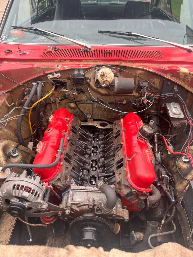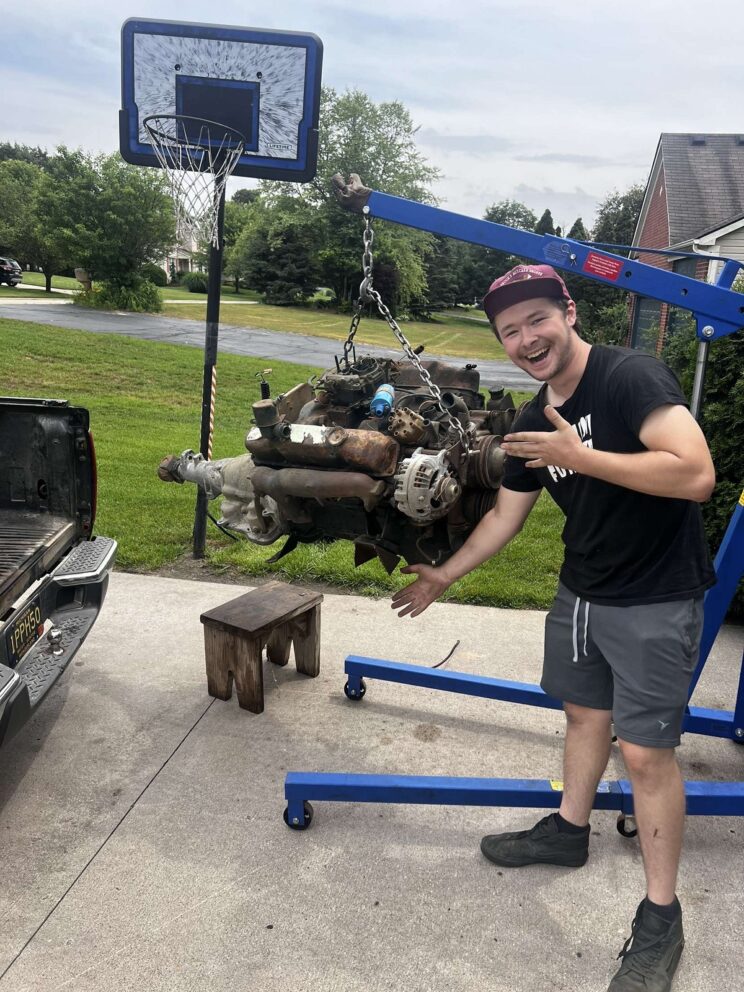 “Come March of ’23, I really had no desire to work on the car. My friends hated seeing me so down about it so one weekend we fired up the heater and got to work. This next one I’m not too proud of but on my shoestring budget it worked enough. We got the motor out of the car and rushed off the oil pan to see what happened. We inspected everything and decided that we only needed a new main cap. So I ran to the junkyard a pulled a set of mains off an ’88 318. I should remind everyone that this was not my best decision, we tested the 3 main caps to see which one had the best clearance to replace the old one and slapped the motor back together. Not my finest work, but it did work.