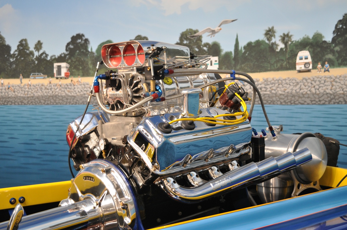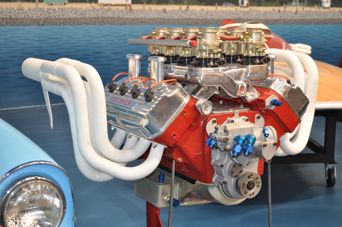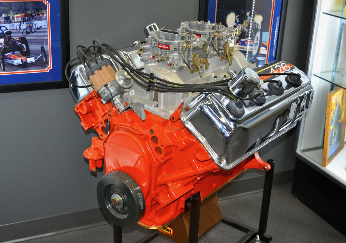 The GEN II HEMI engine is well represented with supercharged a drag boat powerplant and a 426 Street HEMI with inline Edelbrock carburetors, Milodon deep pan. These 426 HEMI engines debuted in early 1964 and remain strong today.