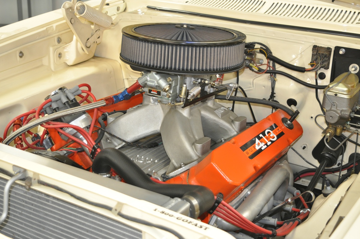 Topped with an Indy intake with Holley 1150-cfm “Dominator” four-barrel, the engine started out as a production 440 and given the works, now good for a dyno-verified 731.5 horsepower output! It was the 413 engine markings for a touch of nostalgia.