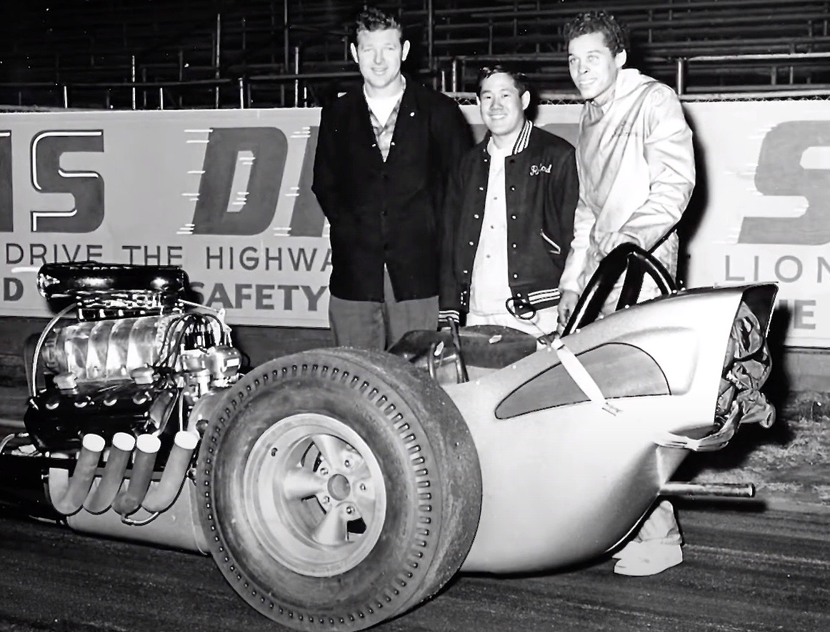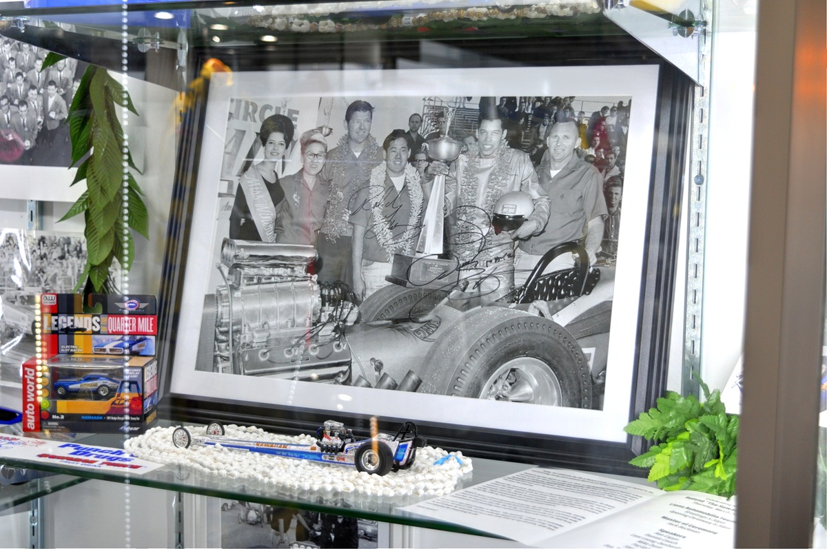 A shot of the Hawaiian Top Fuel car after winning the 1963 NHRA Winternationals, including Roland’s mother in the shot who fully supported the effort and hand-made the leis that her son, Keith Black and Don Prudhomme were wearing in the awards ceremony.
