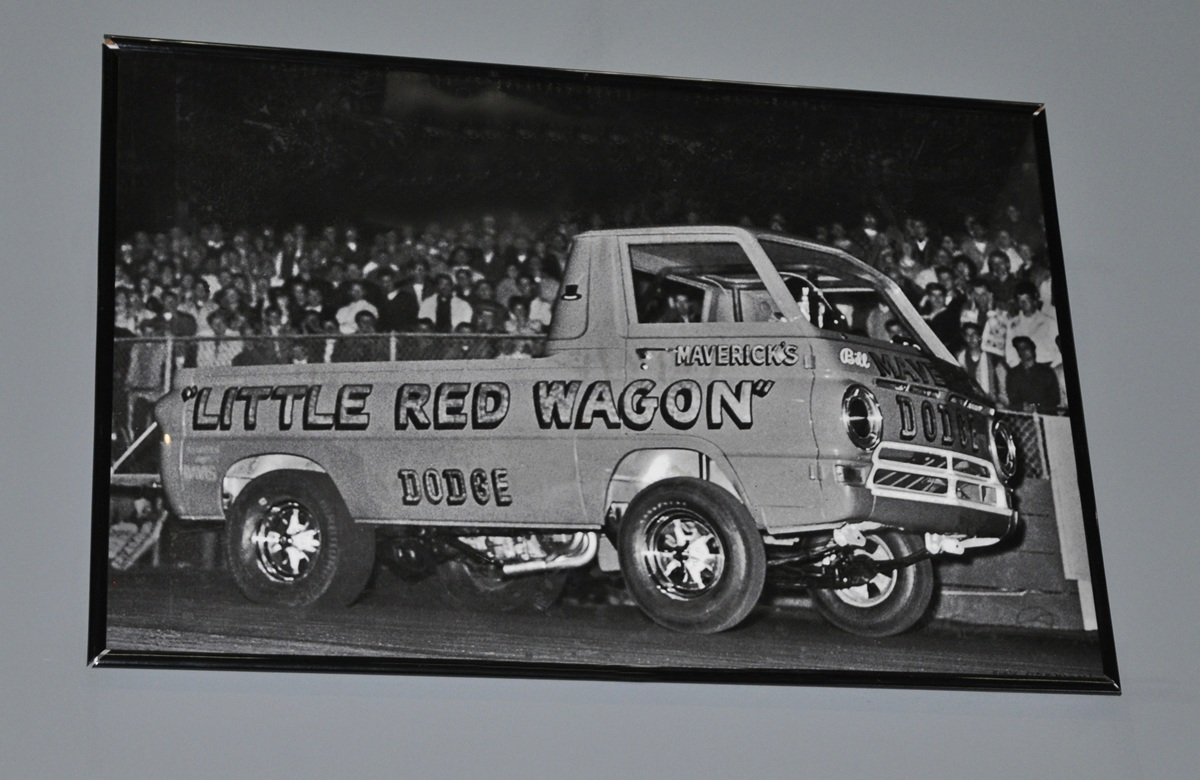 Bill “Maverick” Golden and his wheelstander Little Red Wagon at Lions, injected HEMI engine power!