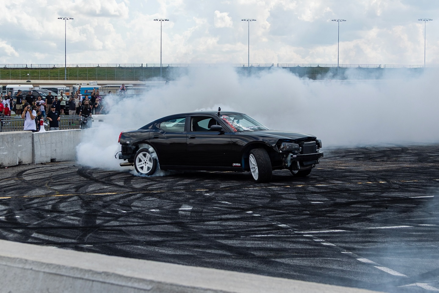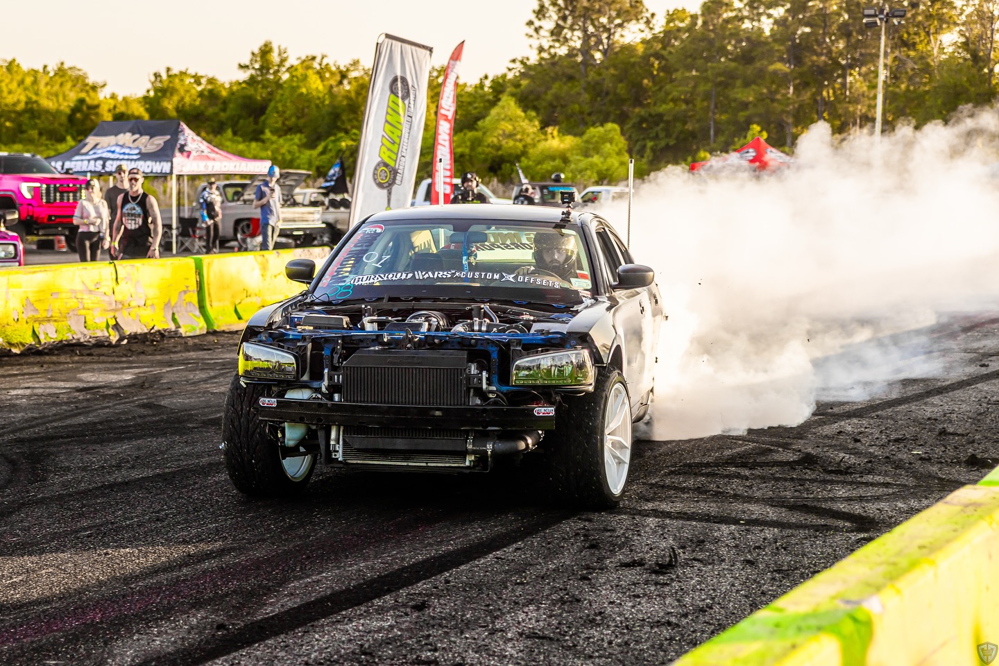 I sat down with Gushi to discuss the finer points of getting LX platform cars sideways on the second story of the media compound overlooking the drift pit’s controlled chaos. Gushi has spent several years proving that American muscle can hang with the best drift machines in the world. His fleet includes multiple Chargers, a Magnum and even a 300. All of them capable of putting down seriously sideways, smoke-filled runs that would make any drift purist reconsider their car of choice.