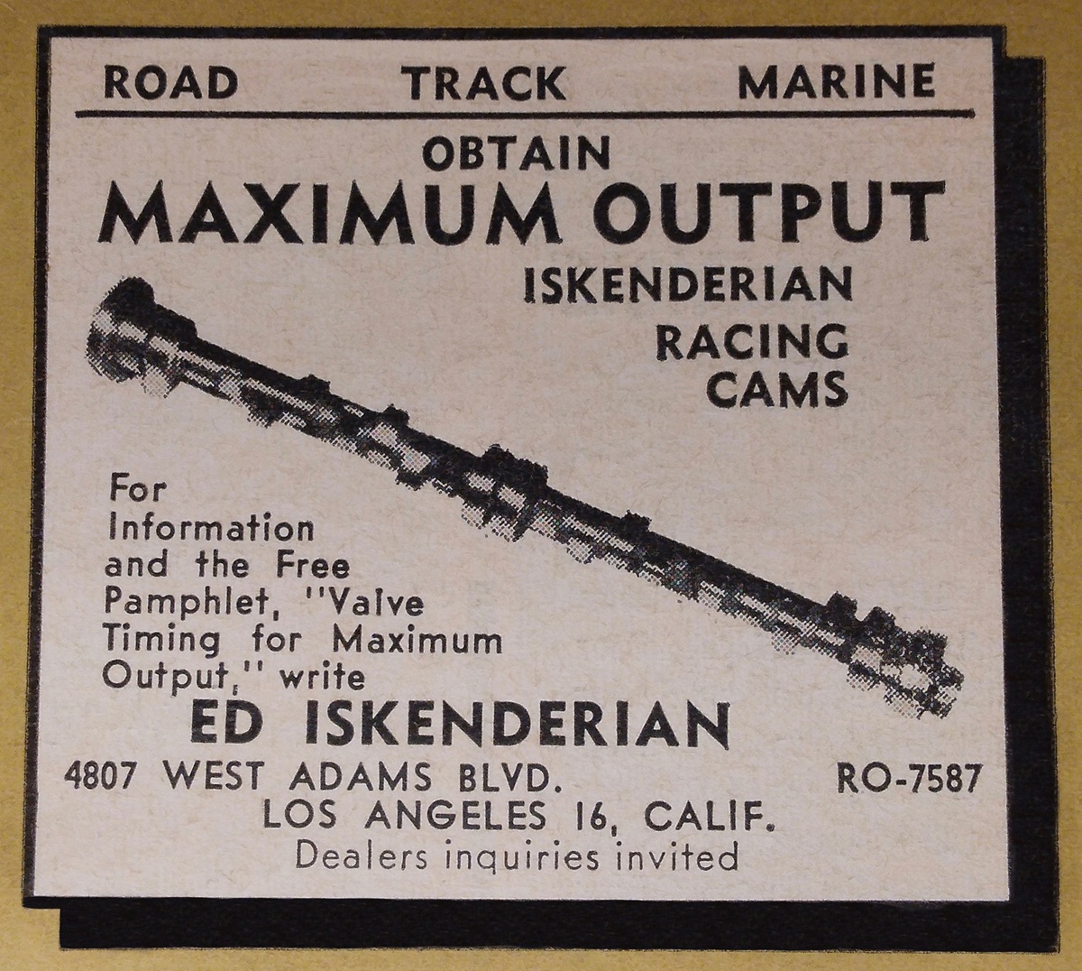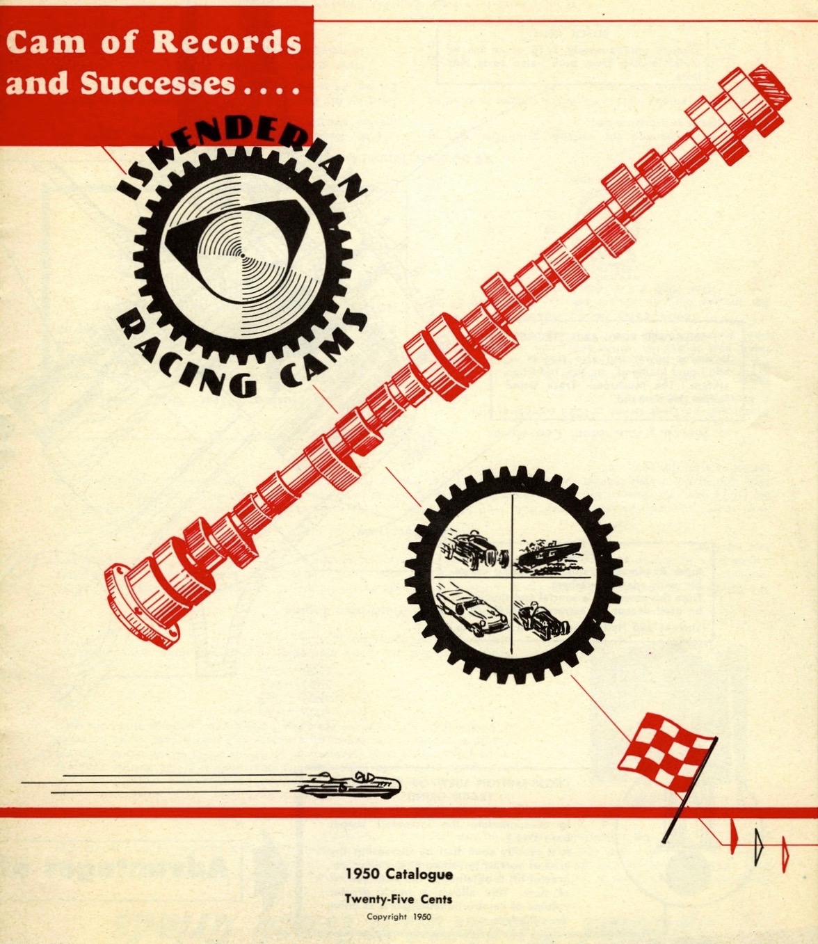 He started his business in a small garage off an alley in the rear of Mercury Tool and Die shop, and his reputation for ingenuity and resourcefulness grew rapidly. The 1950 Iskenderian Racing Cams “Catalogue” was well worth the 25 cents it cost for racers who were after top proven performance.