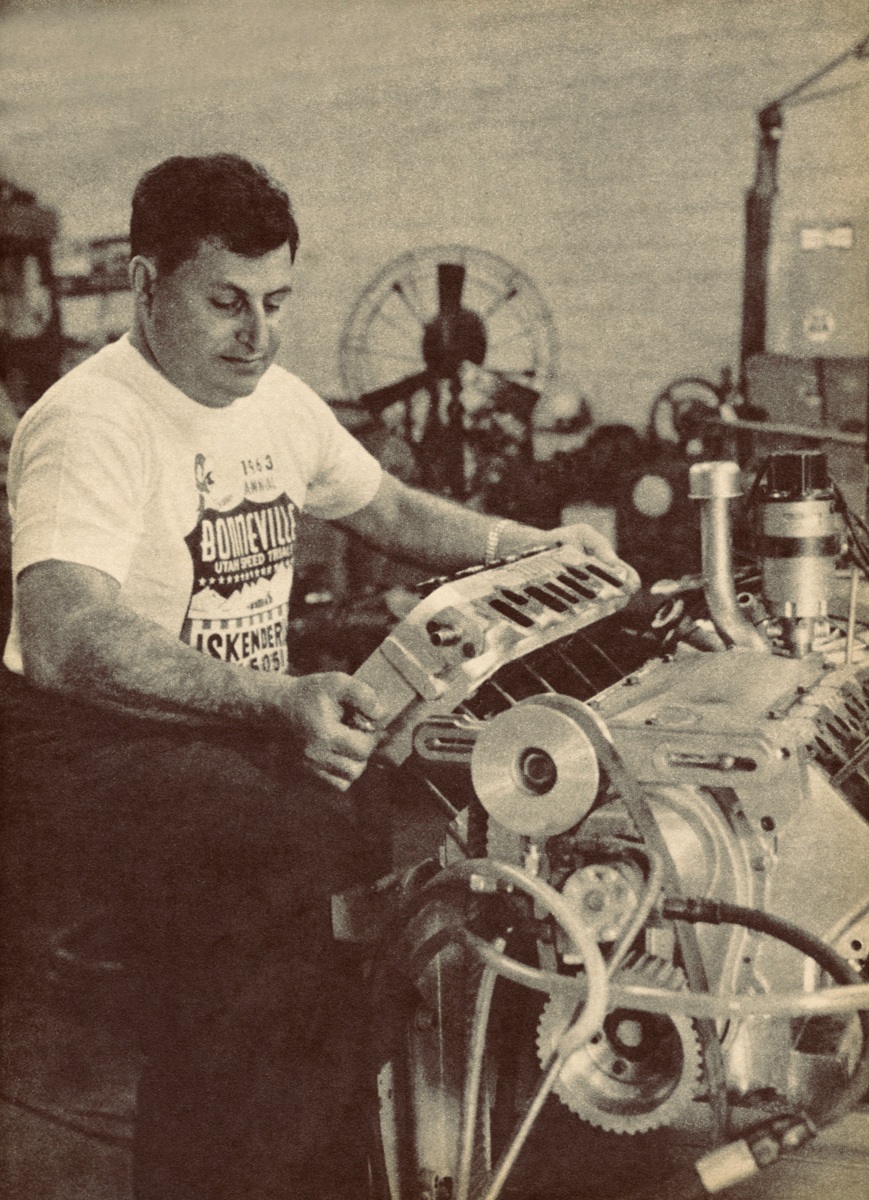 It was during the late 1950s when Ed was able to really get some major advertising exposure with his “5 Cycle Cam” in the way of a top-running dragster of the era, the Cook and Bedwell car. It was a record breaker and in 1960, Isky hit paydirt for ad promotion with the 204.54-mph blast out of the “Chizler” car of Chris Karamesines. The engine for that dragster as described by Trend Book author Griff Borgeson at the time: “It was a 1957 Chrysler HEMI, bored and stroked to 442 ci. Grant pistons on Iskenderian forged aluminum rods yielded a compression ratio of 8:1. Isky also made the cam – his 5-Cycle design – the extra cycle was no more than a period extended overlap where both intake and exhaust valves are open, but the cam delivered plenty of high-rpm horsepower. Up top, a Hilborn injector rode above a GMC 6-71 huffer.” That Isky-equipped engine was considered a generation beyond what others were running at the time.