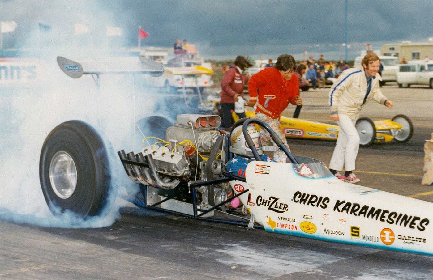 Chicago racer Chris “The Golden Greek” Karamesines was a long-time Isky cam user, going all the way back to the 204.54-mph run on April 4, 1960, at Alton Dragway in Illinois. It was clocked on Fosdick timers and debated for years and years. Nonetheless, Ed Iskenderian promoted the hell out it!