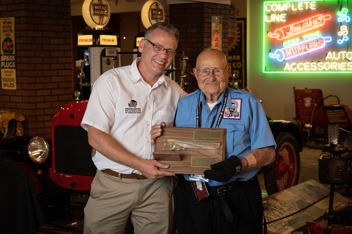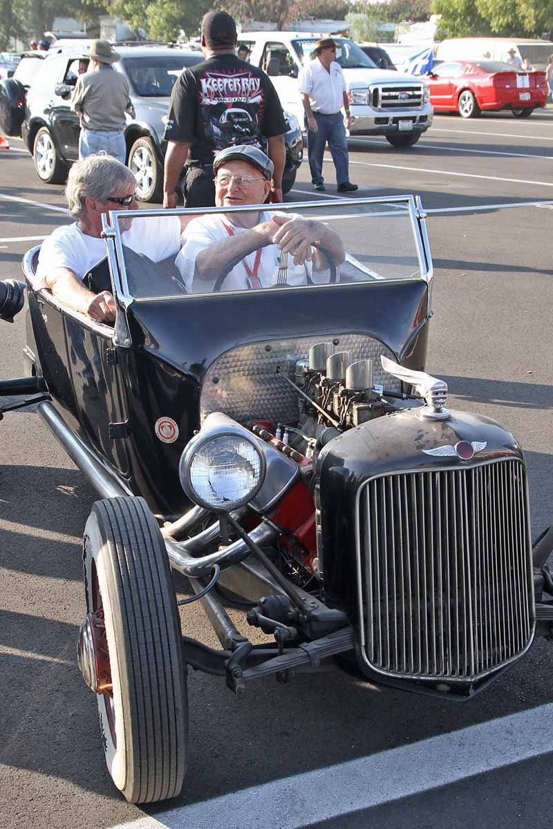 After a long time at the Wally Parks NHRA Museum in Pomona, Ed allowed the old roadster he had built before WWII to be relocated to a beautiful display at the Speedway Motors Museum of American Speed. Here’s Ed with curator Tim Matthews, who greatly impressed Ed with his knowledge of the history of the car (known as “La Cucaracha” because of its low stance). The car has so much history that was is worth a dedicated article all to itself.
