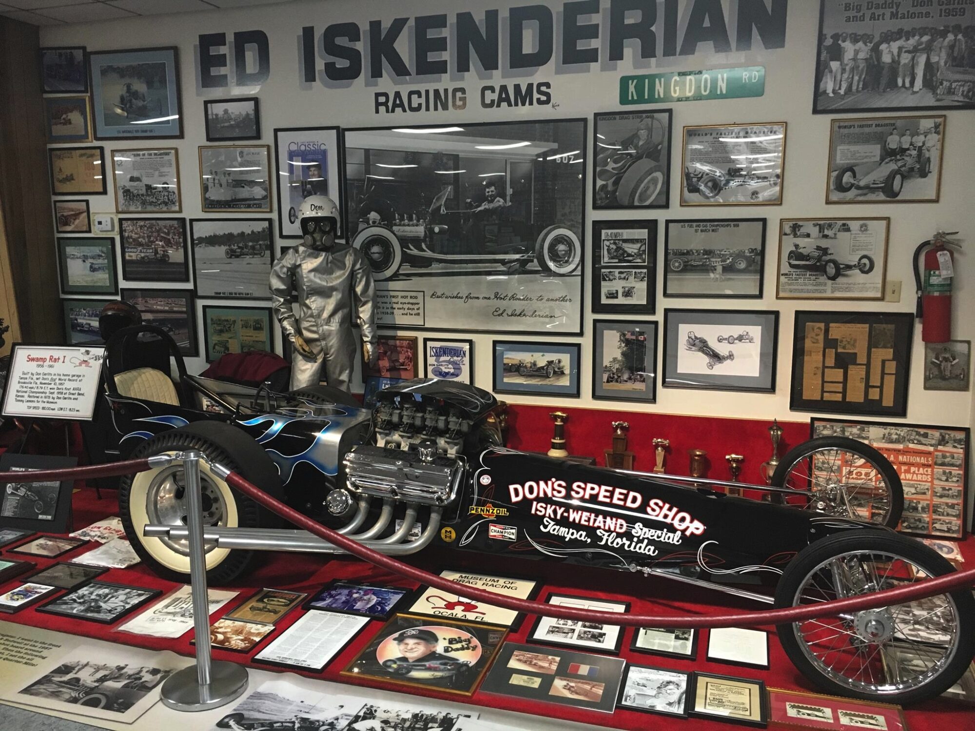 Ed Iskenderian and Don Garlits were long-time friends since the very early days! Inside the Garlits Museum (Ocala, FL) is the exhibit on the “Swamp Rat I” dragster from 1956-1961 which proudly has “ISKY-WEIAND Special” markings on it. Weiand was a co-sponsor to the car as the provider of the intake manifold.